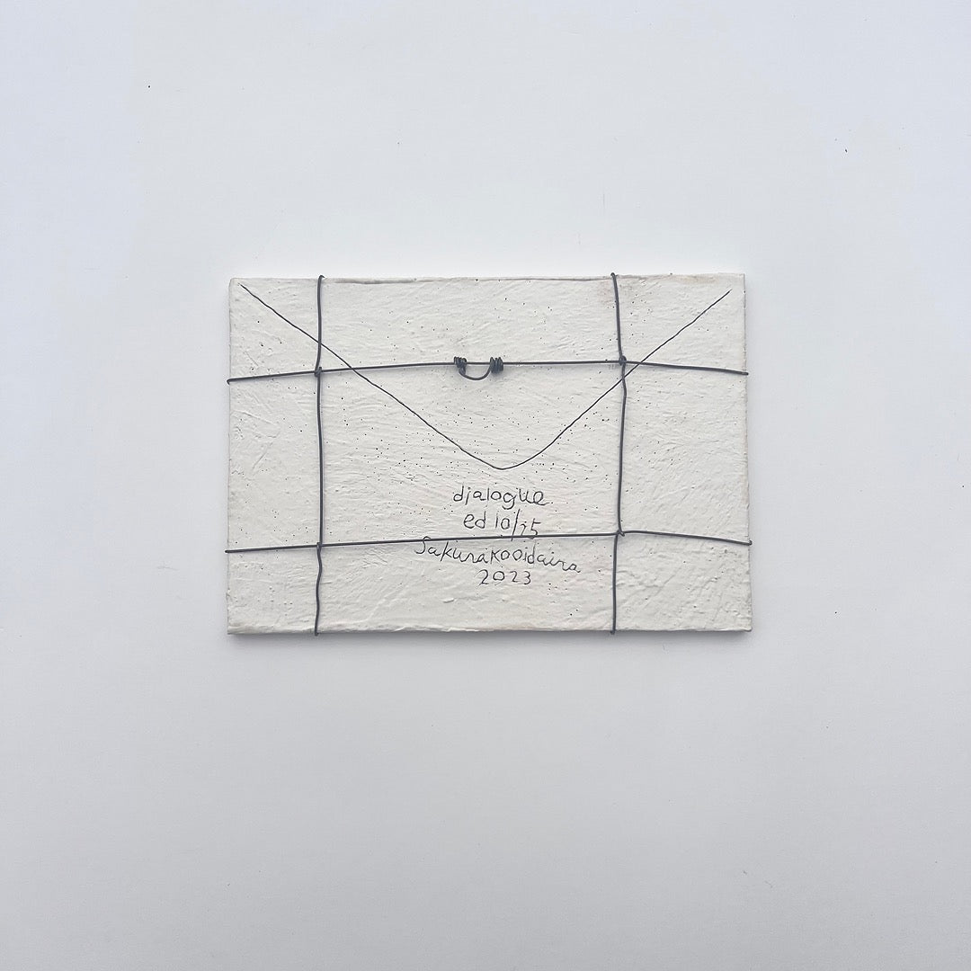 The series "Dialogue" was created in 2023 on the theme of separation and connection. Based on ideas gained from her experience in printmaking, she regards her works as originals but also as editions, and each piece is engraved with an edition number. It is about the size of an actual letter and can be hung on the wall.