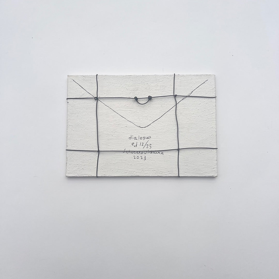 The series "Dialogue" was created in 2023 on the theme of separation and connection. Based on ideas gained from her experience in printmaking, she regards her works as originals but also as editions, and each piece is engraved with an edition number. It is about the size of an actual letter and can be hung on the wall.