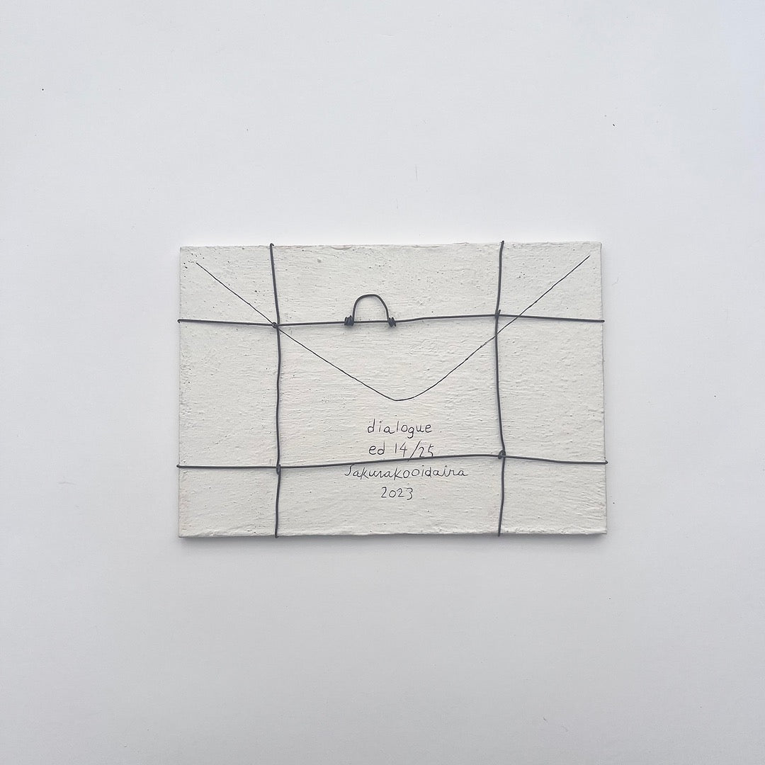 The series "Dialogue" was created in 2023 on the theme of separation and connection. Based on ideas gained from her experience in printmaking, she regards her works as originals but also as editions, and each piece is engraved with an edition number. It is about the size of an actual letter and can be hung on the wall.