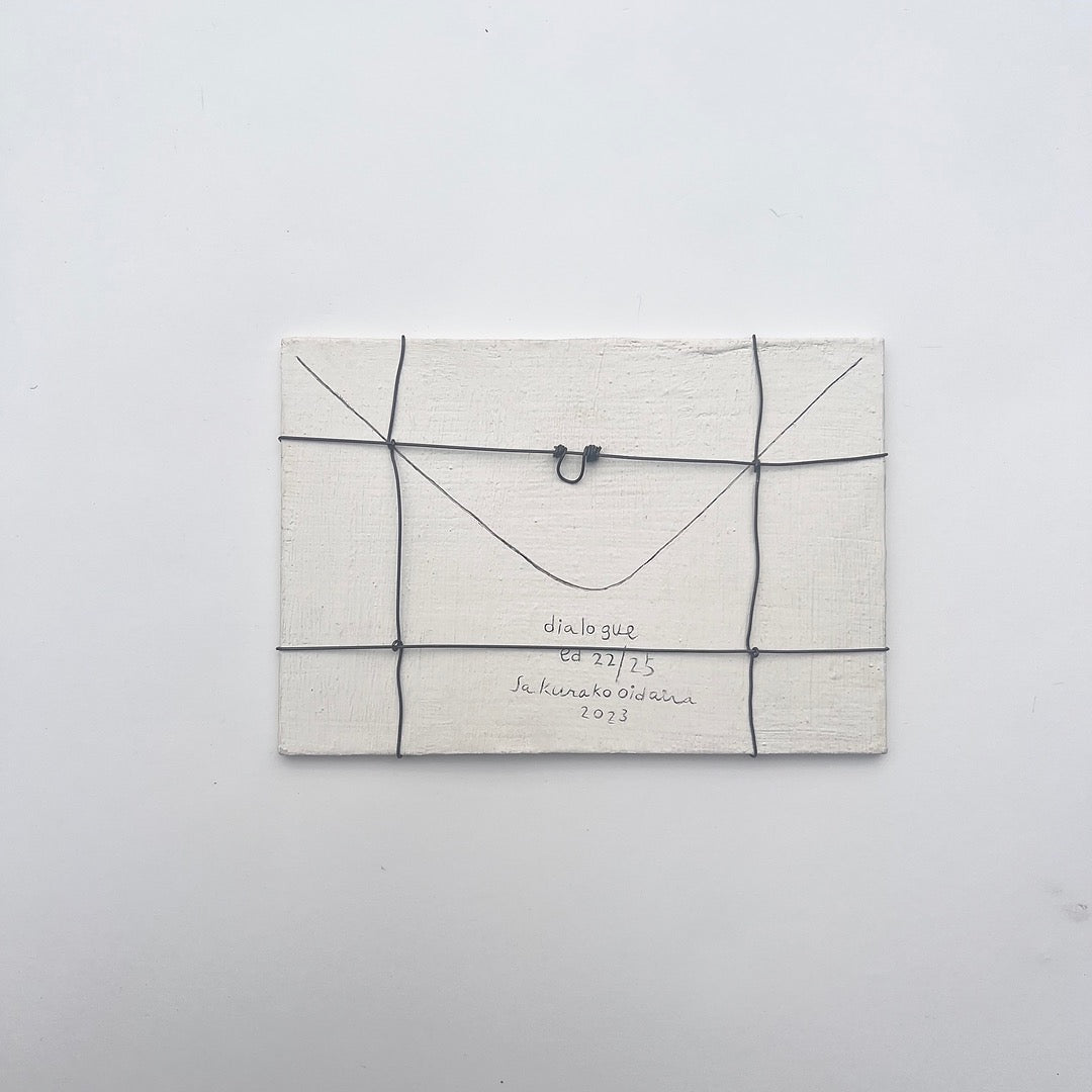 The series "Dialogue" was created in 2023 on the theme of separation and connection. Based on ideas gained from her experience in printmaking, she regards her works as originals but also as editions, and each piece is engraved with an edition number. It is about the size of an actual letter and can be hung on the wall.