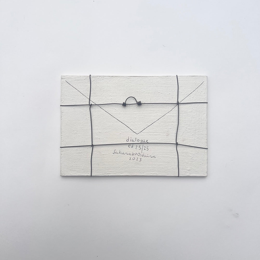 The series "Dialogue" was created in 2023 on the theme of separation and connection. Based on ideas gained from her experience in printmaking, she regards her works as originals but also as editions, and each piece is engraved with an edition number. It is about the size of an actual letter and can be hung on the wall.