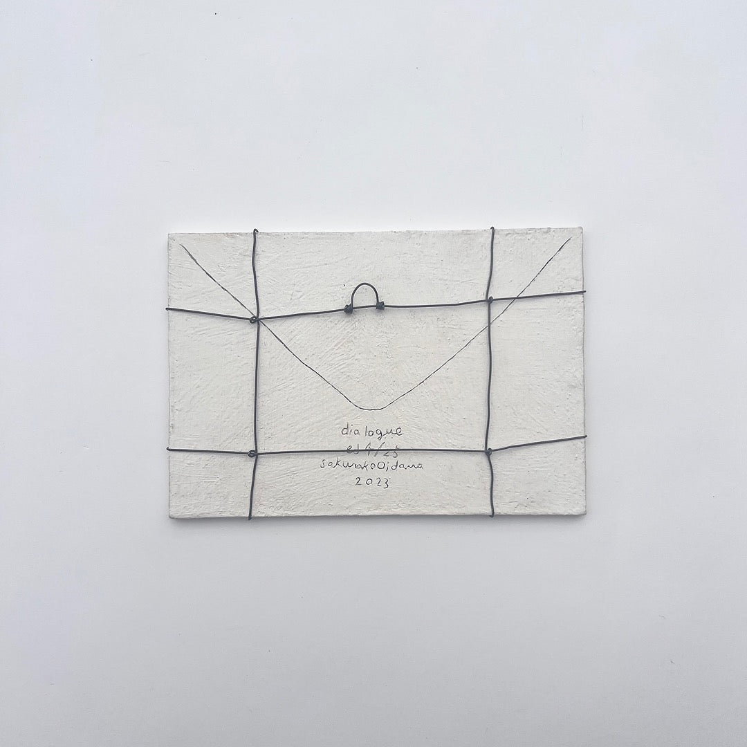 The series "Dialogue" was created in 2023 on the theme of separation and connection. Based on ideas gained from her experience in printmaking, she regards her works as originals but also as editions, and each piece is engraved with an edition number. It is about the size of an actual letter and can be hung on the wall.