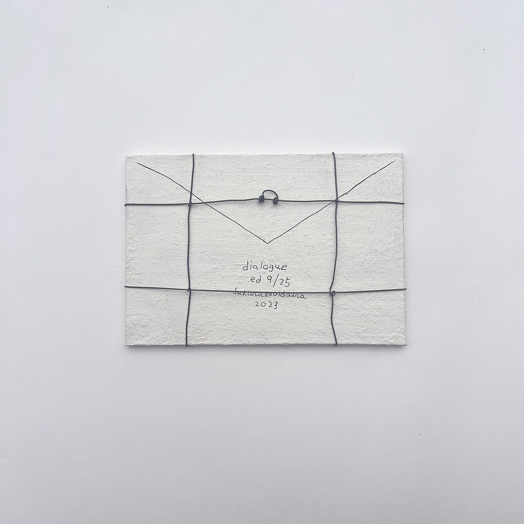 The series "Dialogue" was created in 2023 on the theme of separation and connection. Based on ideas gained from her experience in printmaking, she regards her works as originals but also as editions, and each piece is engraved with an edition number. It is about the size of an actual letter and can be hung on the wall.
